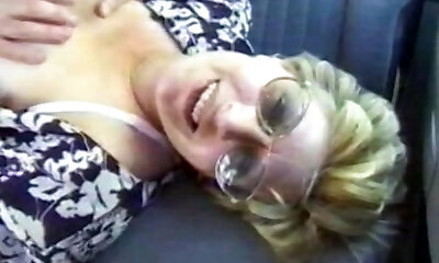 Sexy blonde mommy exposes her really big titties in my car