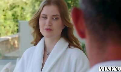 Crimson haired seductress Angelina enjoys a full body rubdown and passionate sex