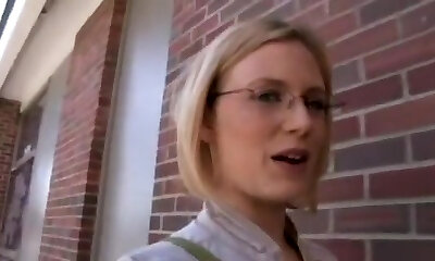 Lewd gamine ash-blonde head Lily Rader goes bi-racial in the gloryhole room