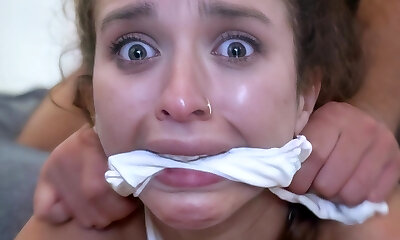 Several black guys fuck mouth of small tittied and blind folded teen