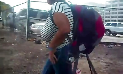 Gorda tetuda en la calle