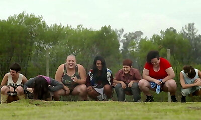 Girl licking labia while friends watching