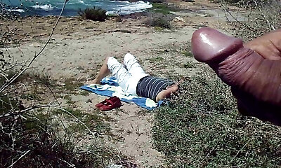 Stranger on the beach jerking off on my wife