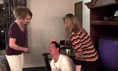 Femdom fetish mistresses fuck bdsm loser with strap dildo