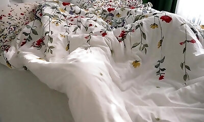 4'8'' 142cm 9 Month Knocked Up Asian Milf getting caressed all over with baby lubricant - Double cam view from below and in front
