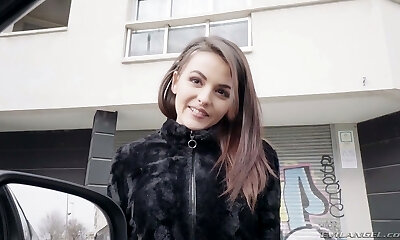 Skinny amateur French teen gets fucked in interchange for a van ride