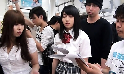 Super-hot Japanese babe in school uniform sucks a dick till cum in hatch