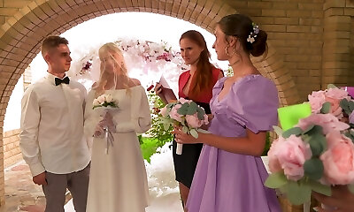 Obsessed with hump dude fucks bride and bridesmaid in front of trussed up groom