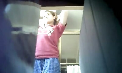 18 year old SISTER caught on REAL hidden spy cam undressing for bed.